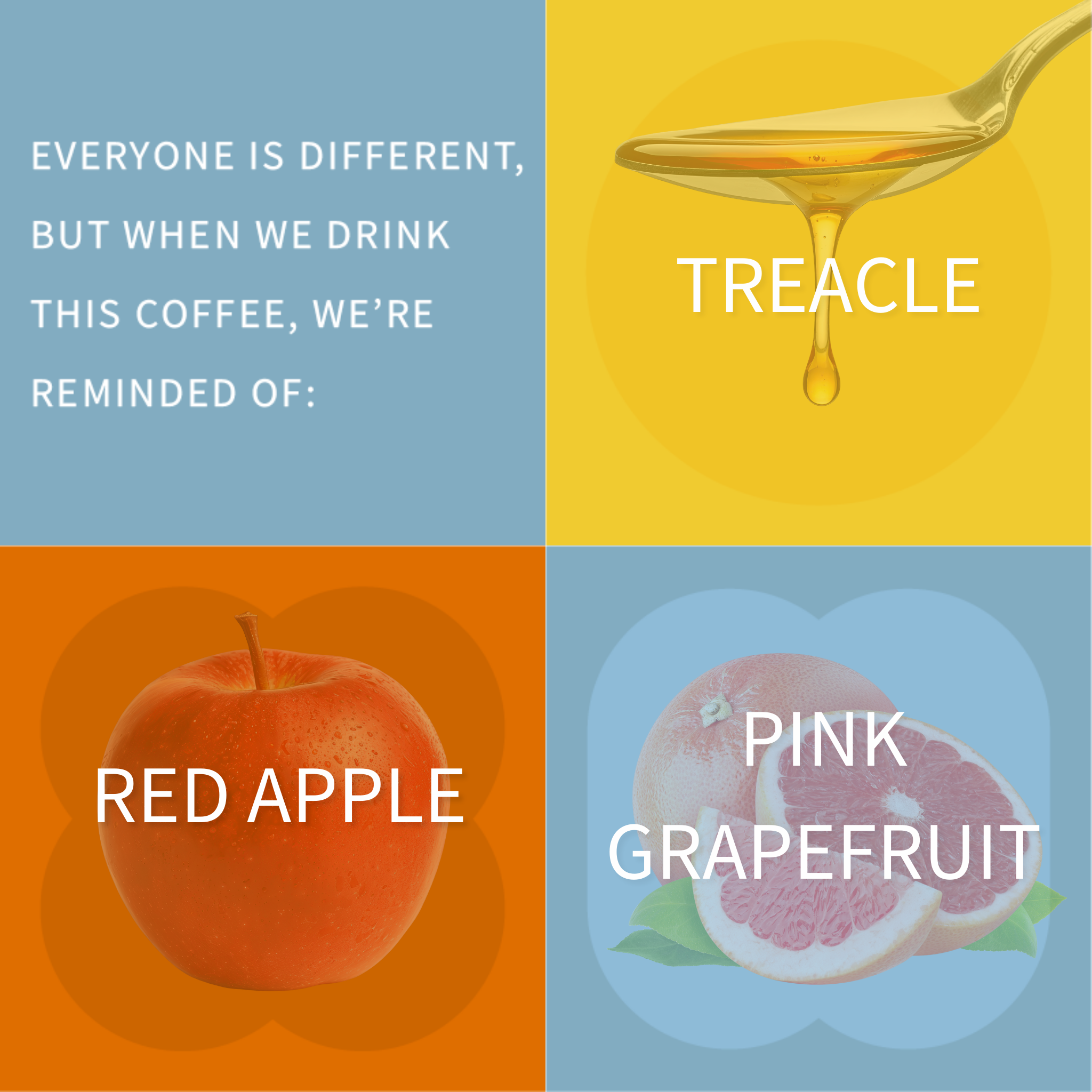 In the cup, you can expect a gentle red apple acidity, smooth, sticky, treacle-like sweetness and a touch of pink grapefruit in the finish which brings a nice balancing hint of bitterness to the party.