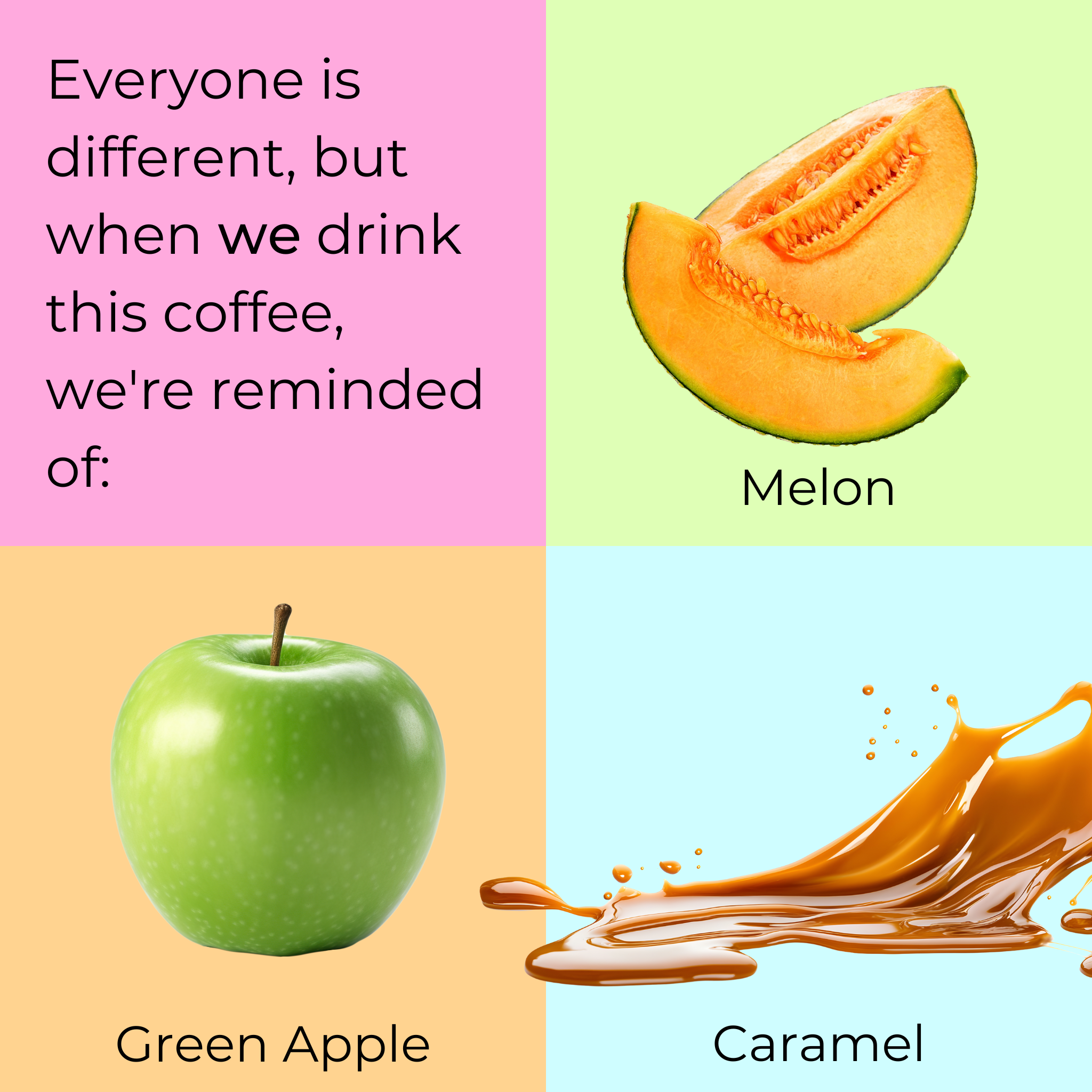 When we drink this coffee, we get a crisp, green apple acidity that is complemented by a fabulous cantaloupe melon sweetness. Add in a smooth caramel mouthfeel and you've got coffee that won't fail to put a smile on your face. Brew using something like a V60 to really dig into the layers of yummy.
