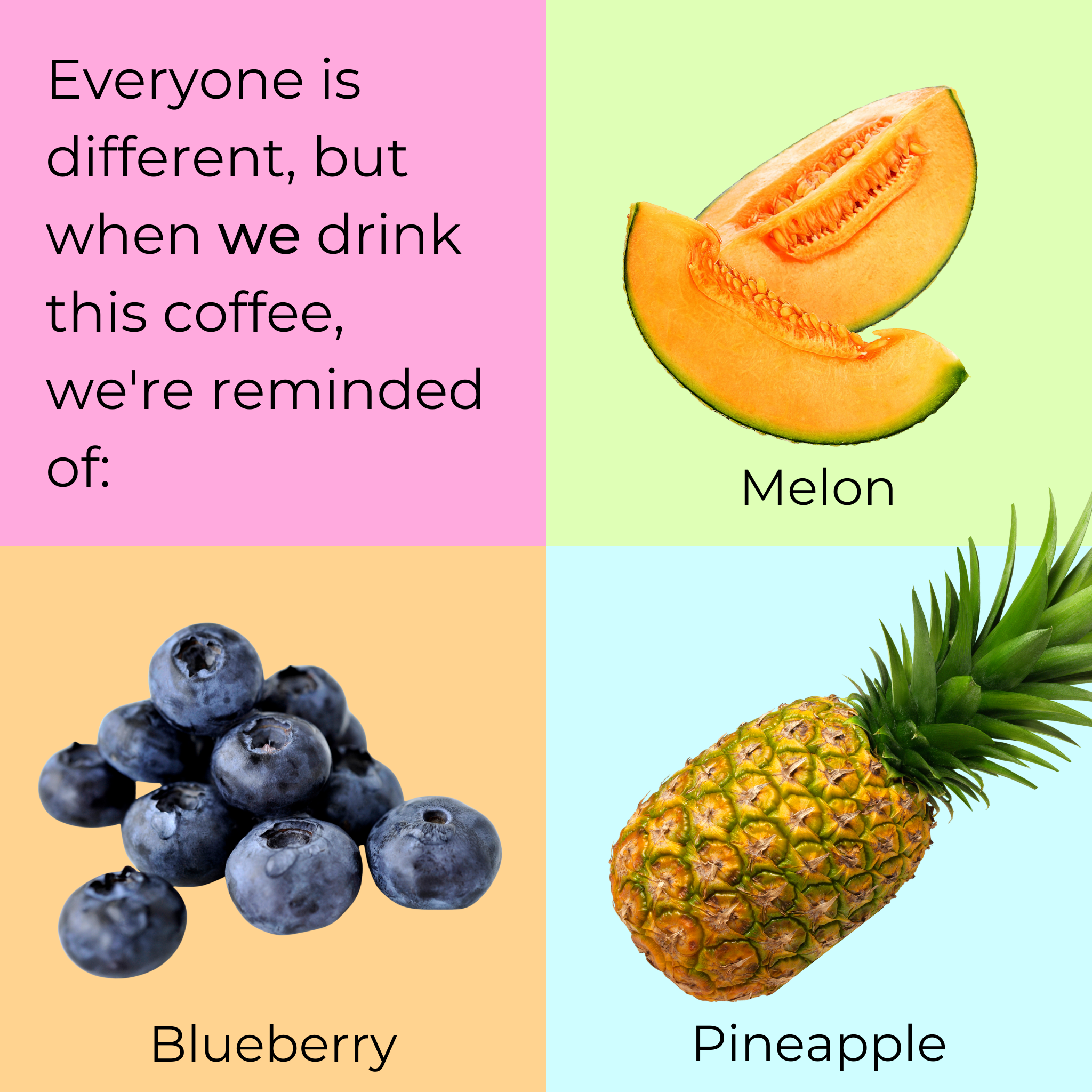 When we drink this coffee, we get those familiar blueberry notes but there's more. Distinctive but well balanced melon and pineapple add a less usual tropical feel to the coffee. The acidity is gentle and the processing is judged perfectly which means we end up with a really well balanced, classy coffee that is a real joy to drink.